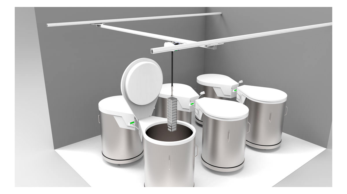 Polipasto para la manipulación de racks en contendedores criogénicos
